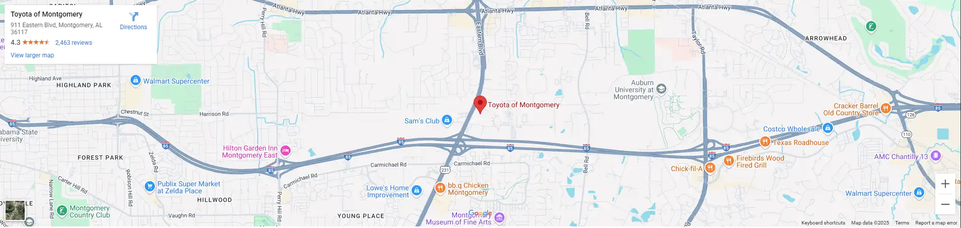Conveniently located in Montgomery, AL, we welcome drivers from all over the region including Pike Road and Wetumpka. Visit us today to explore our Toyota inventory, meet our team, or take a test-drive. At Toyota of Montgomery, your journey begins with confidence, comfort, and a dealership experience built around you.