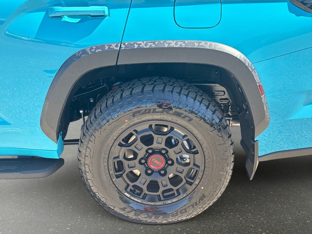 Color-keyed door handles; satin-black outside mirror caps and roof railsPremium LED headlights with black trim, LED Daytime Running Lights (DRL), sequential turn signals, and automatic leveling adjustment18-in. TRD Pro matte-black forged-aluminum BBS® wheels with TRD center caps -